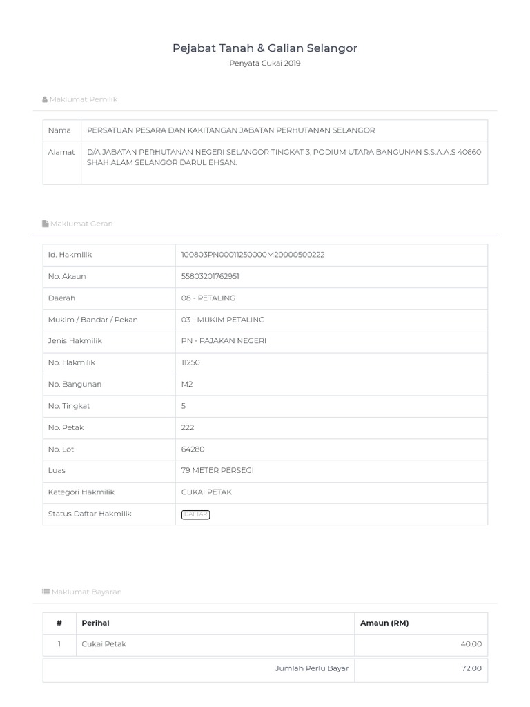 Related : Cukai Petak Selangor Bayar Online : Selangor Cukai Tanah 2018 Author On D Cute766 : Pejabat tanah dan galian negeri selangor..